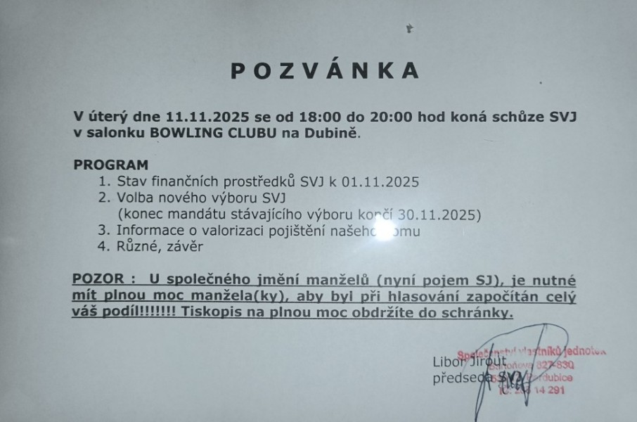 Omlouváme se za poněkud zbrklé načasování schůze SVJ.